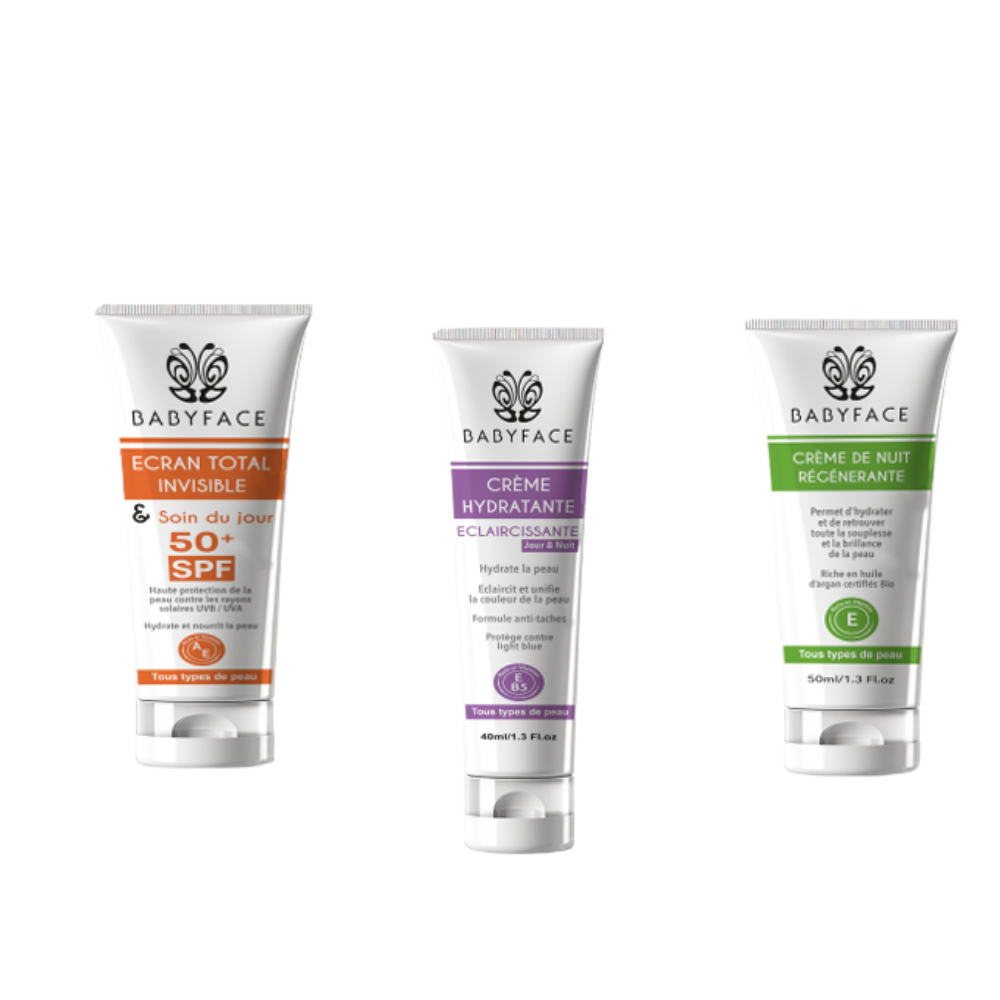 Chez BABYFACE , nous vous offrons une gamme de soins complets pour le visage, le corps et les cheveux, formulés pour hydrater, protéger et révéler l’éclat naturel de votre peau. Nos produits BABYFACE allient douceur, efficacité et richesse en vitamines pour une beauté saine au quotidien.